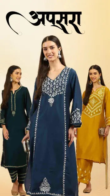 Multicoloured Chikankari Cotton Kurta Set With Kashmiri Embroidery