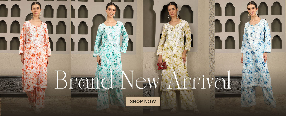 Yasmin Chikankari Kurta Set with White Thread – Notch Neck