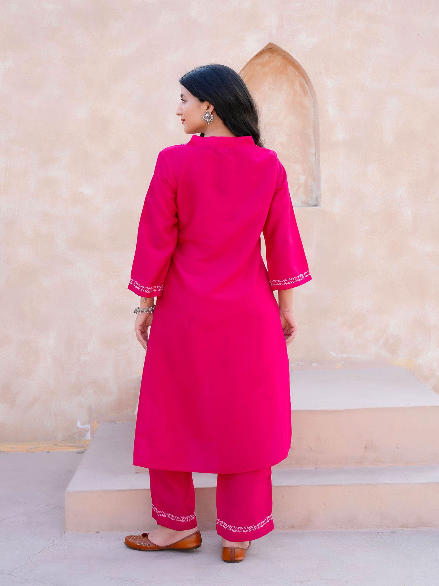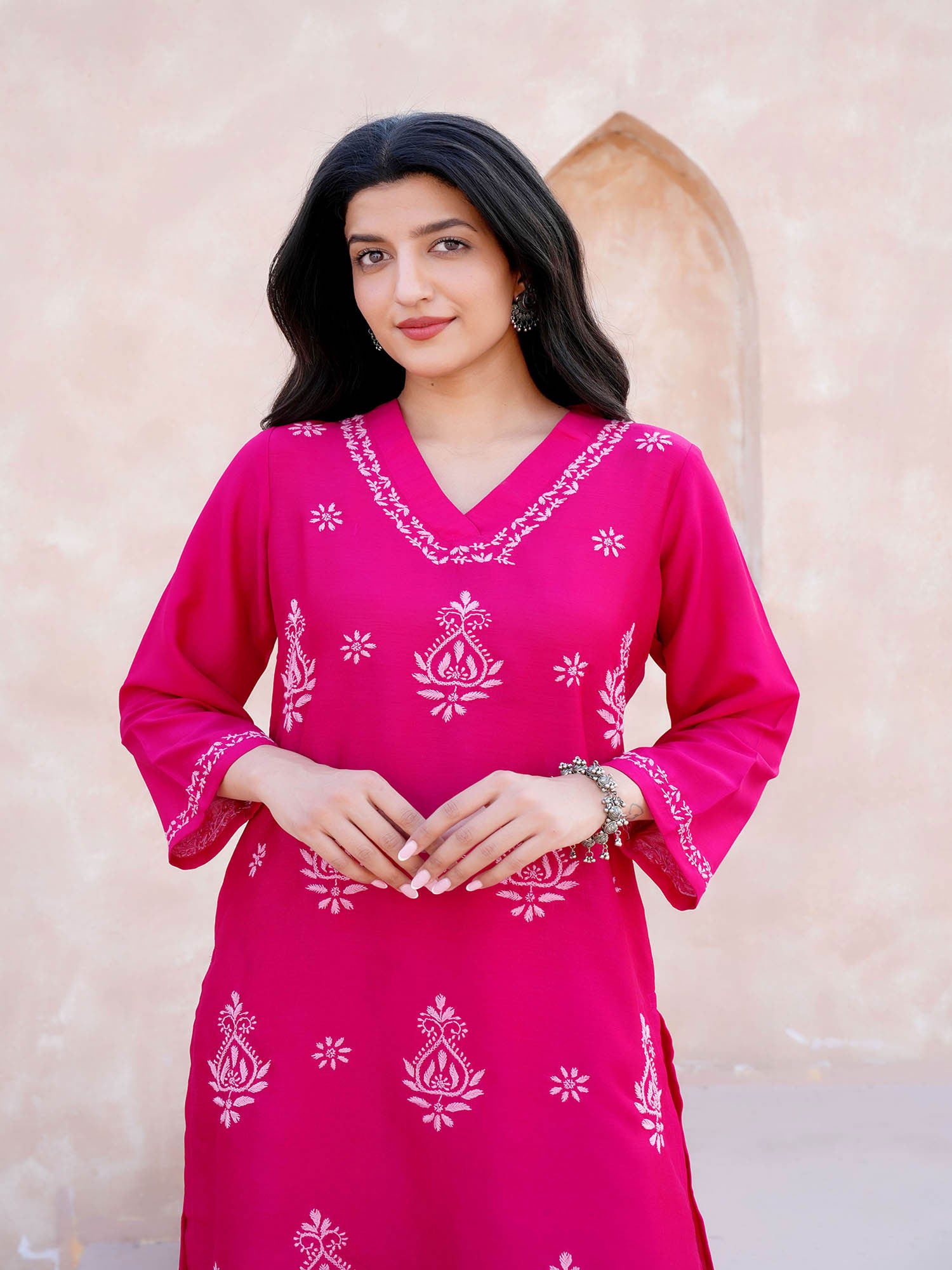 Bhavya Chikankari Kurta Set on Silk – Classic V Neck