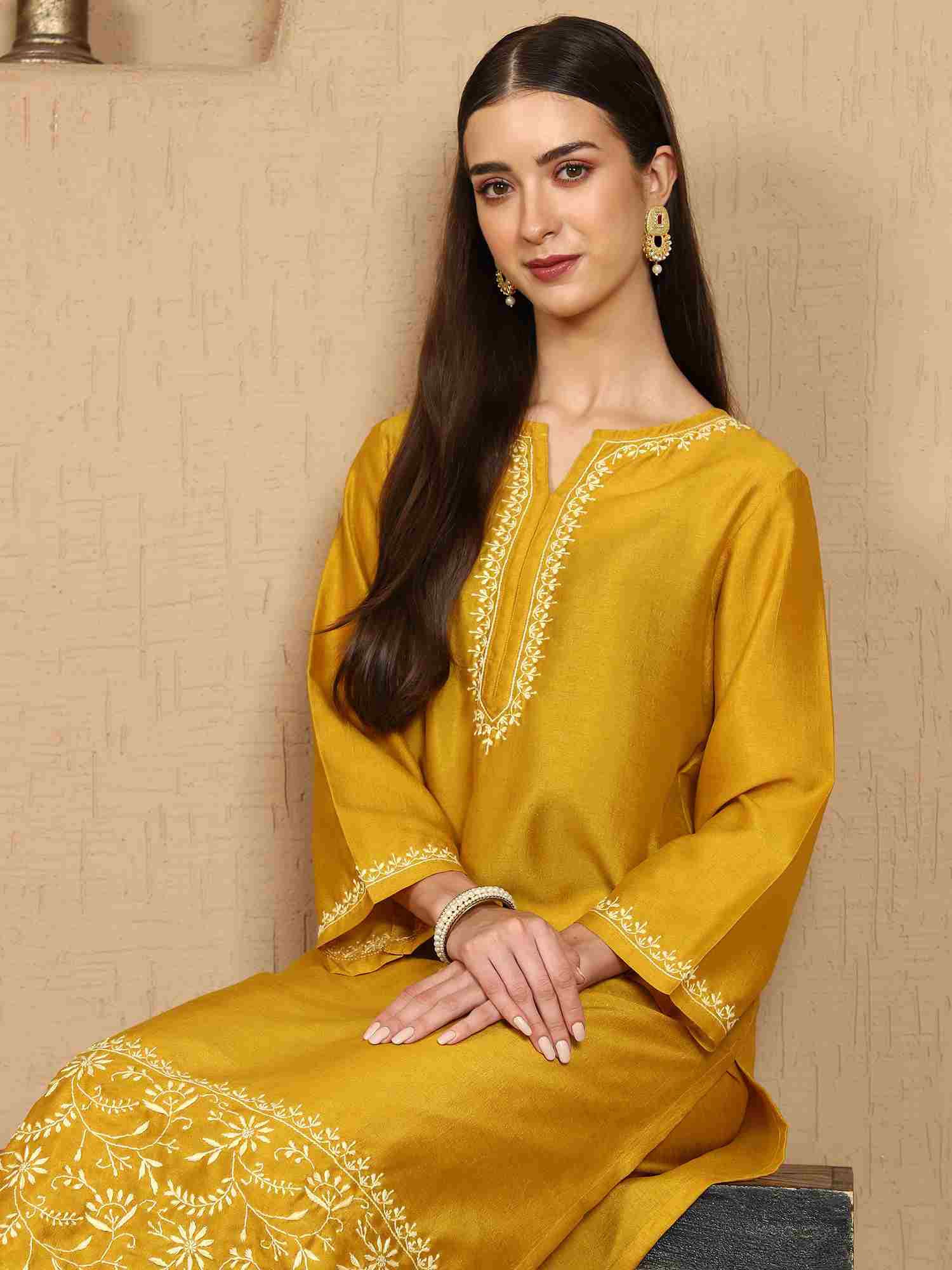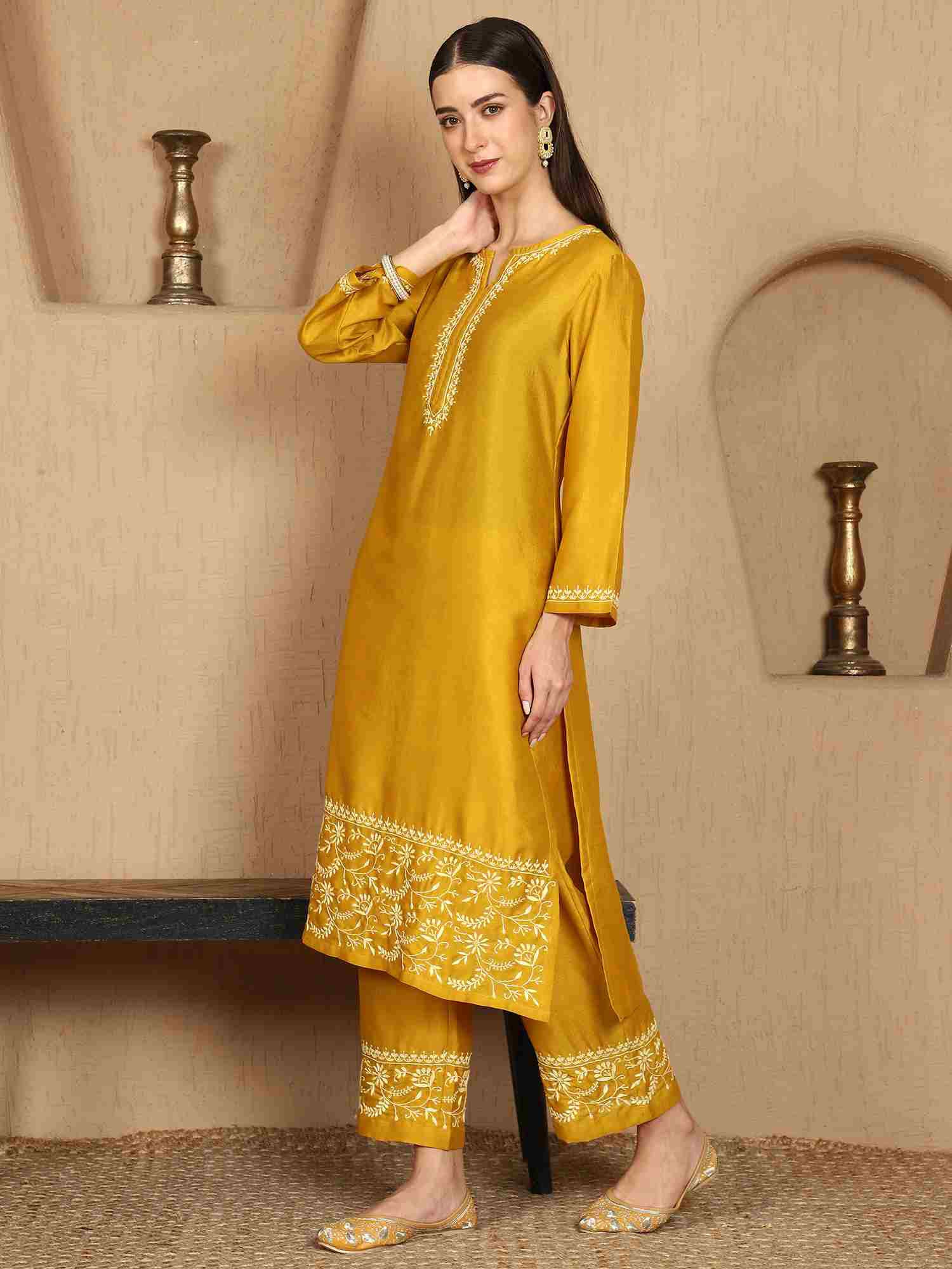 Janhvi Yellow Chikankari Kurta Set with Butter Yellow Border – Notch Neck
