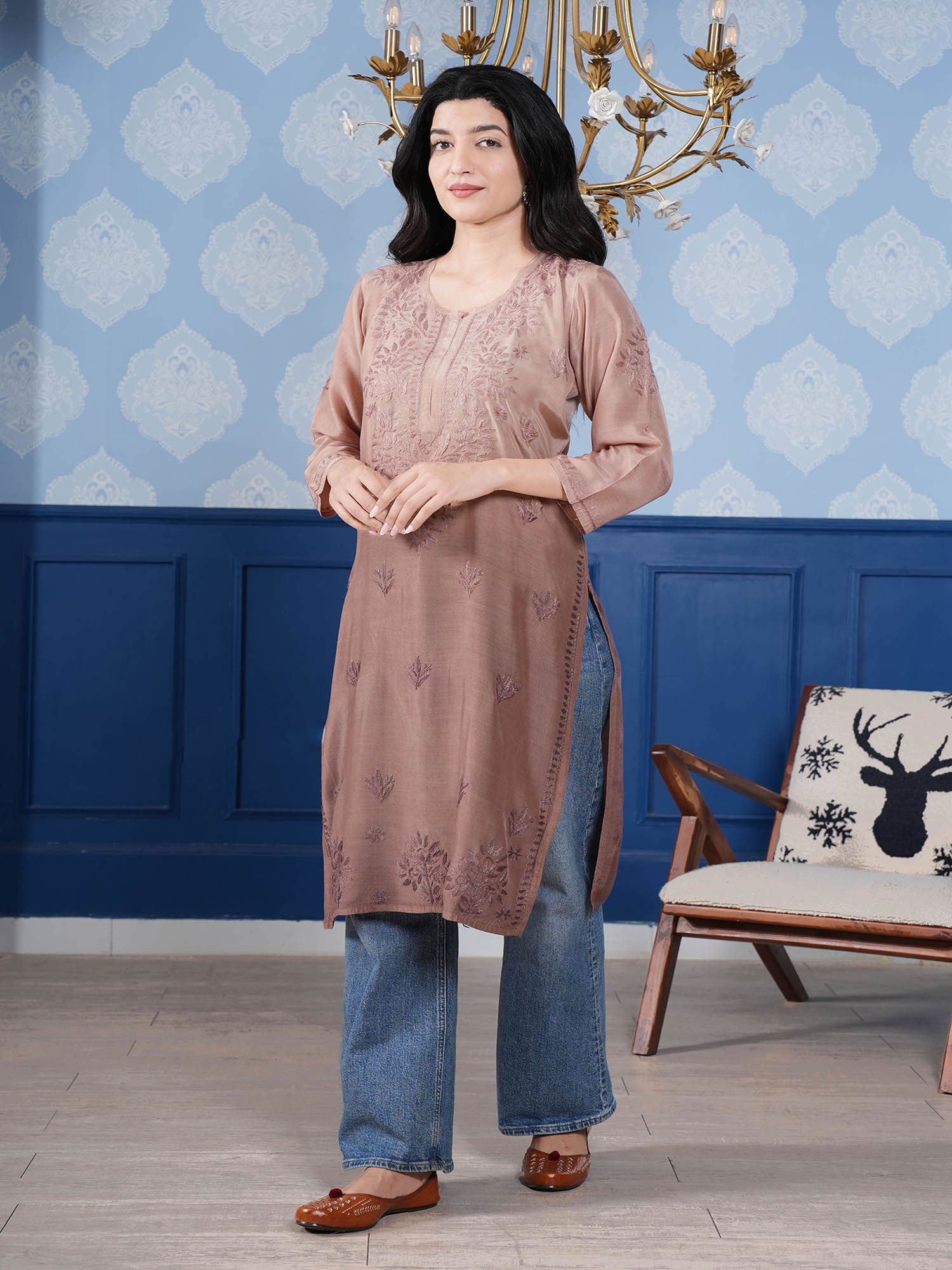 Aranya Chikankari Kurta – Cozy Brown Ombre