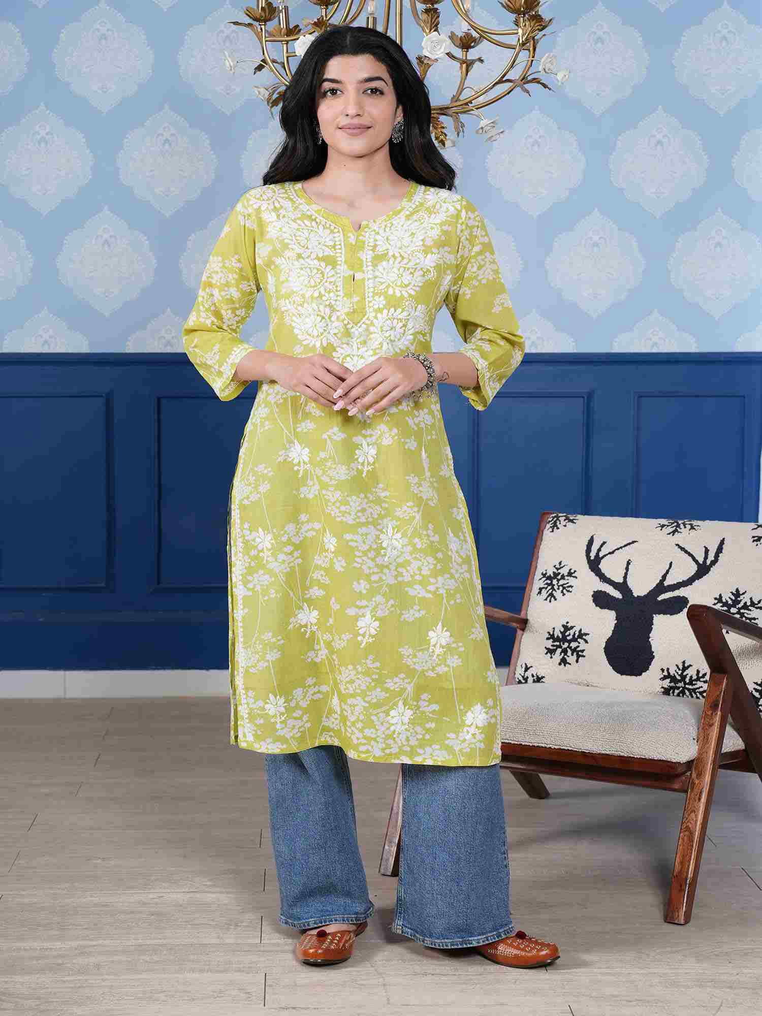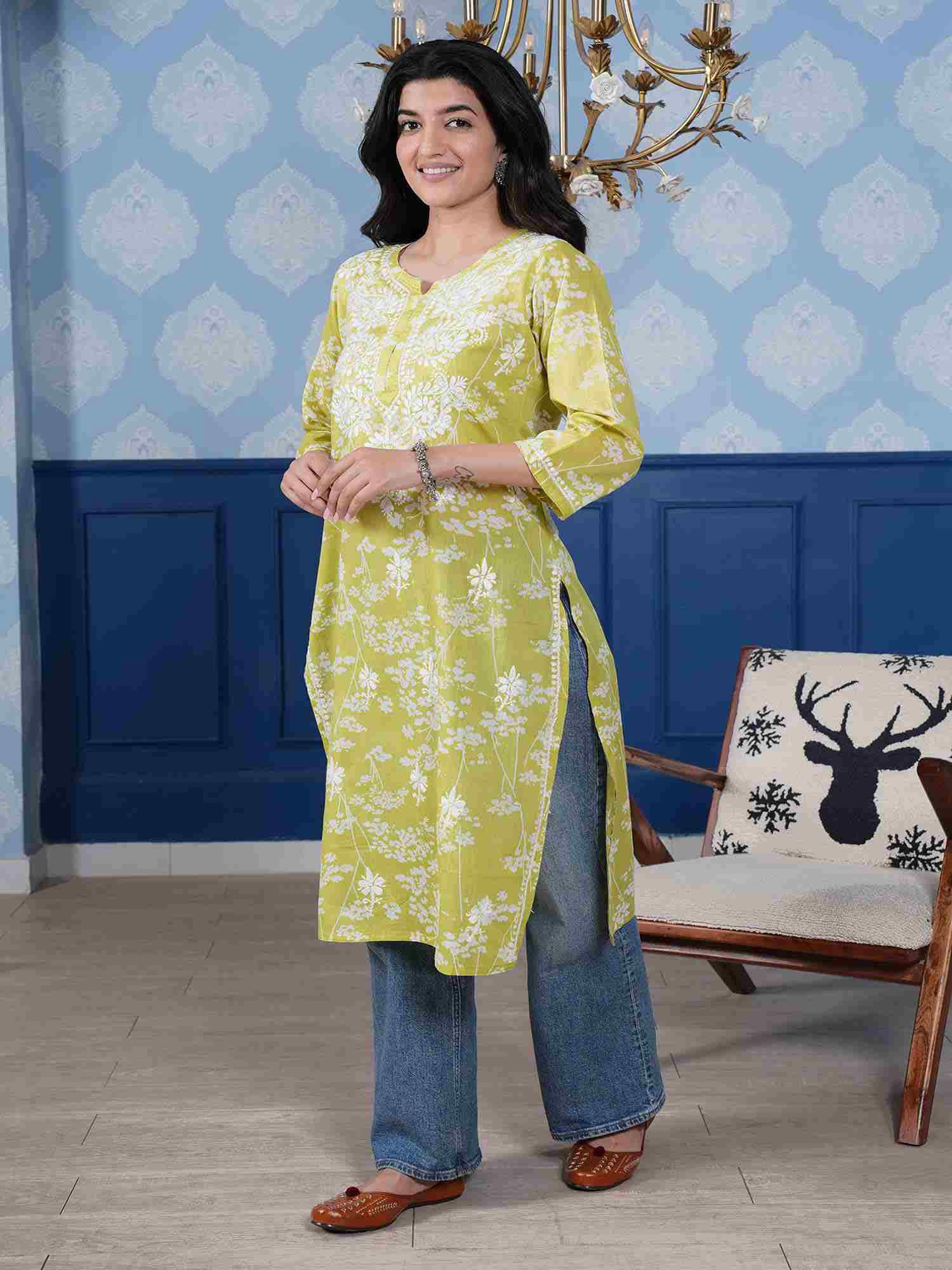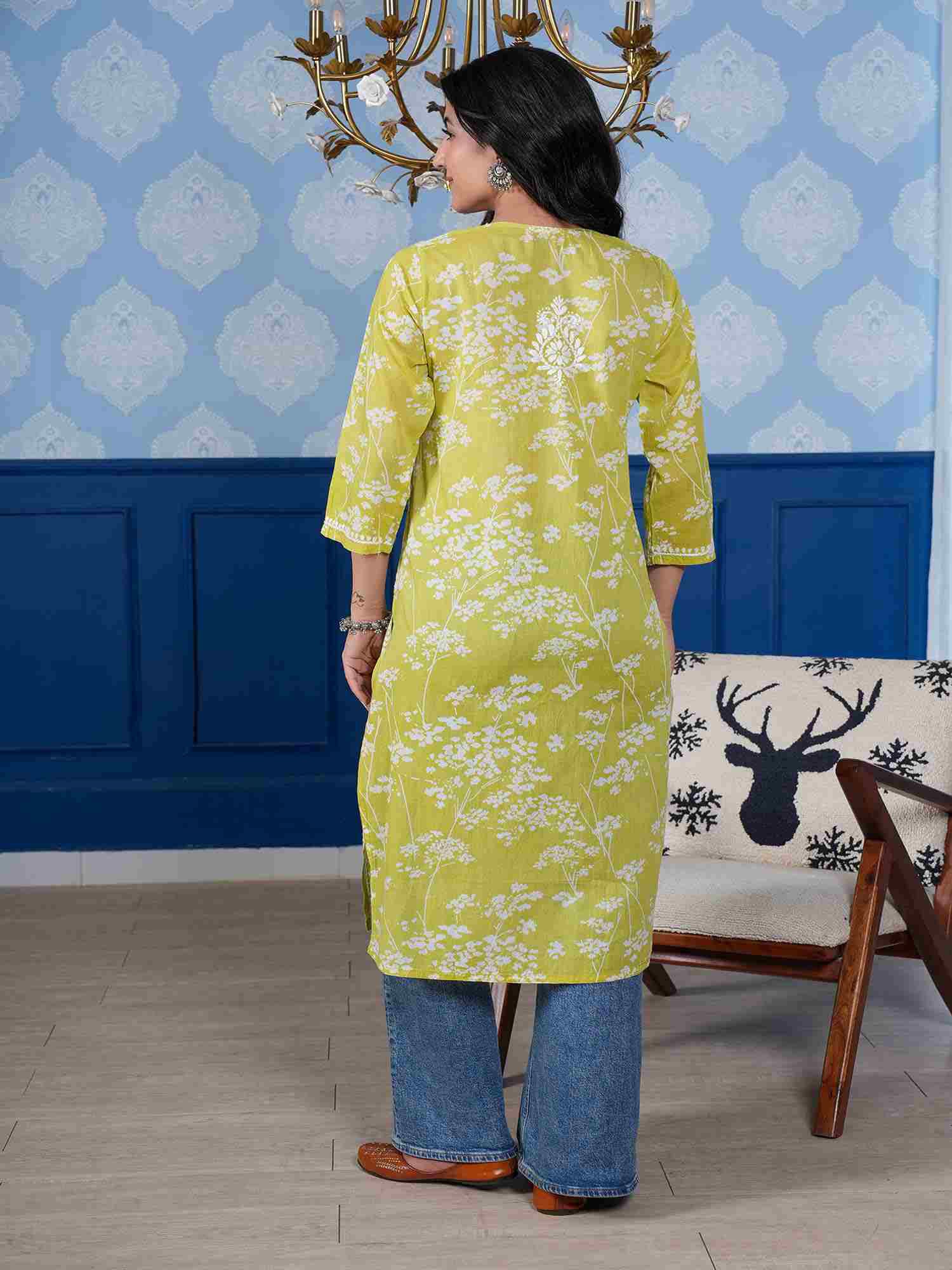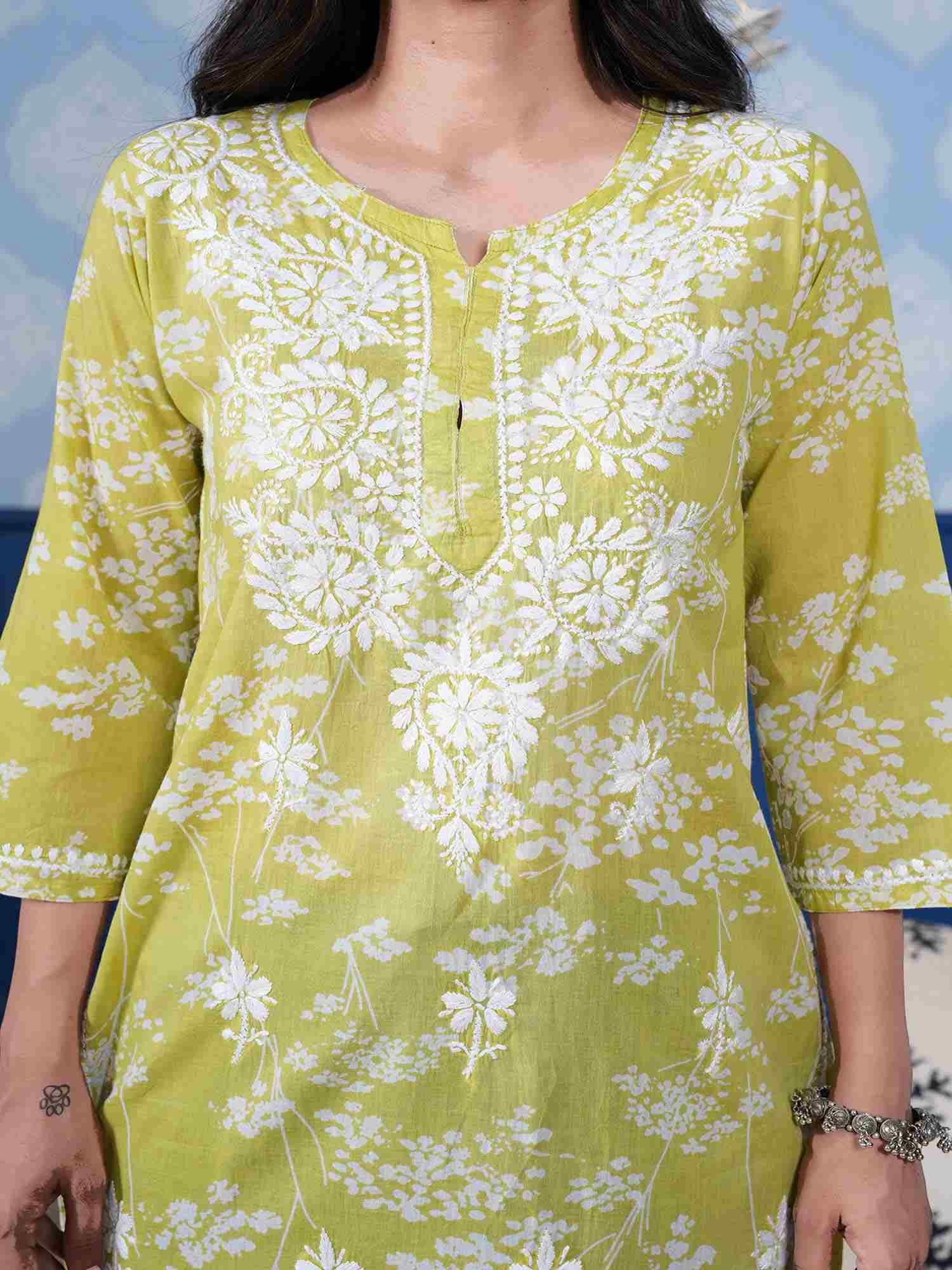 Omya Chikankari Kurta – Mint Green