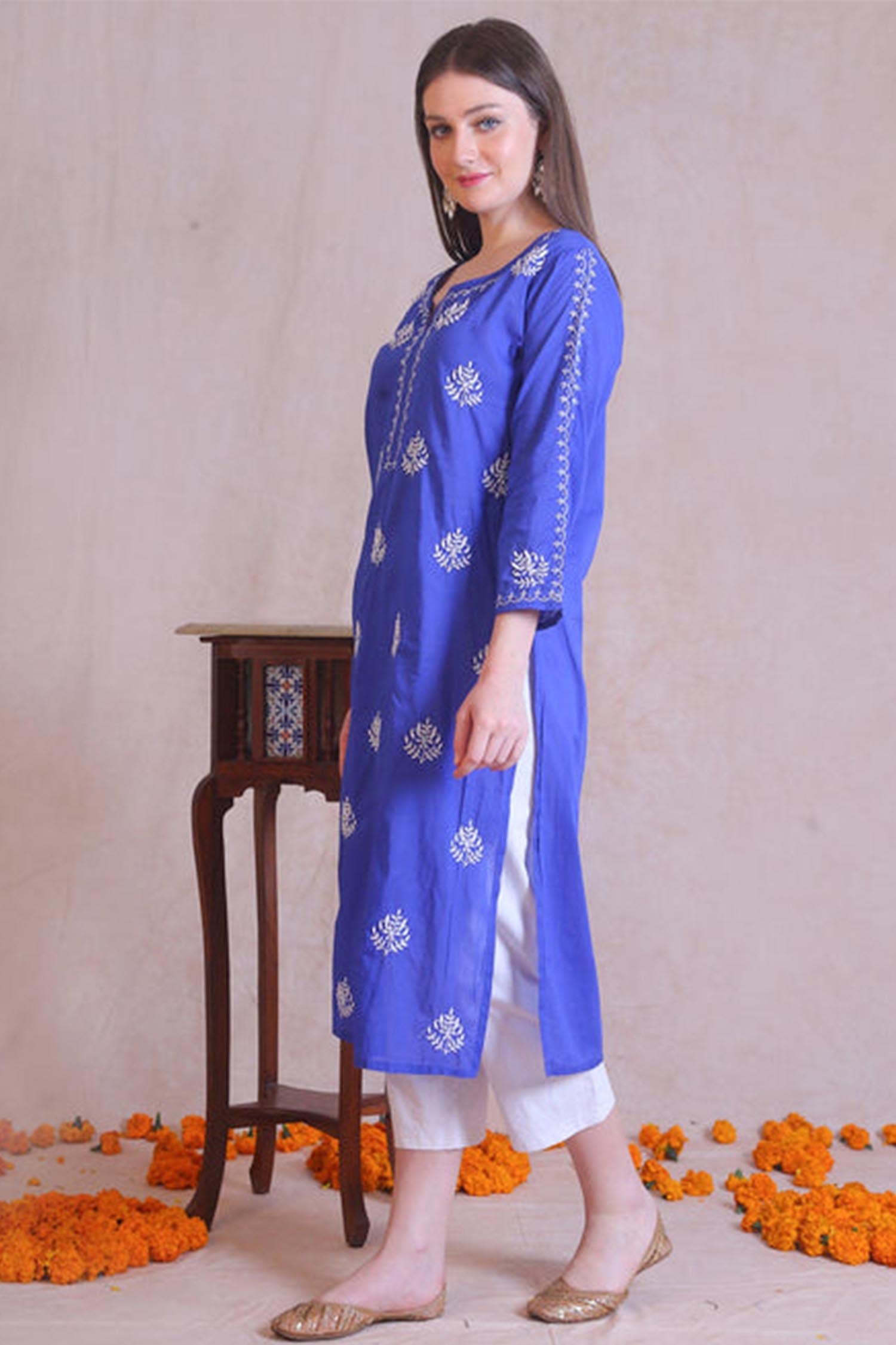 An amazing Slub cotton Kurta with chikankari embroidery thats unique and refreshing. A perfect one for day to day chores or for work. The chikankari work is unique and stylish for everyday wear and even small events.