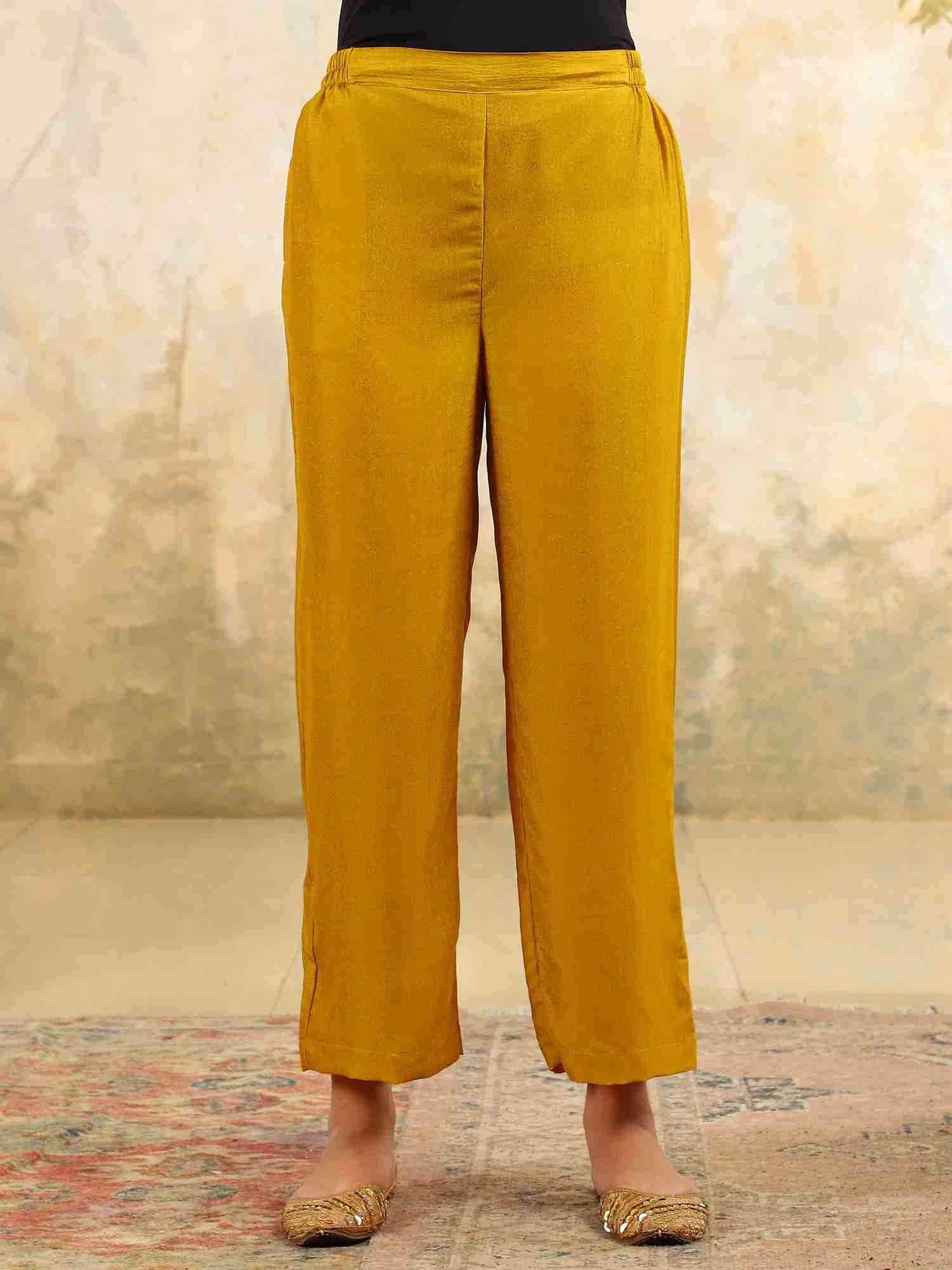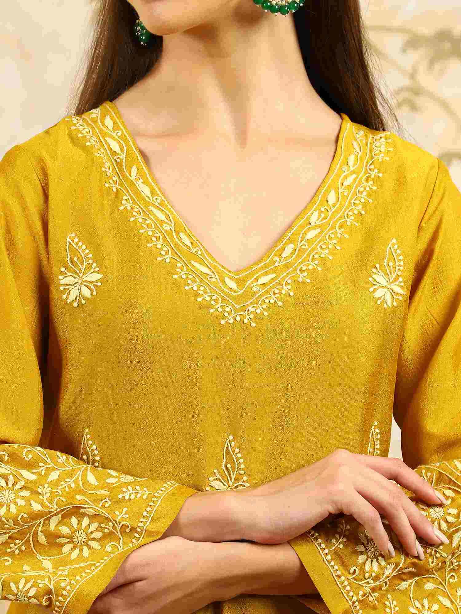 Yamini Yellow Chikankari Kurta Set with Butter Yellow Butta – V Neck