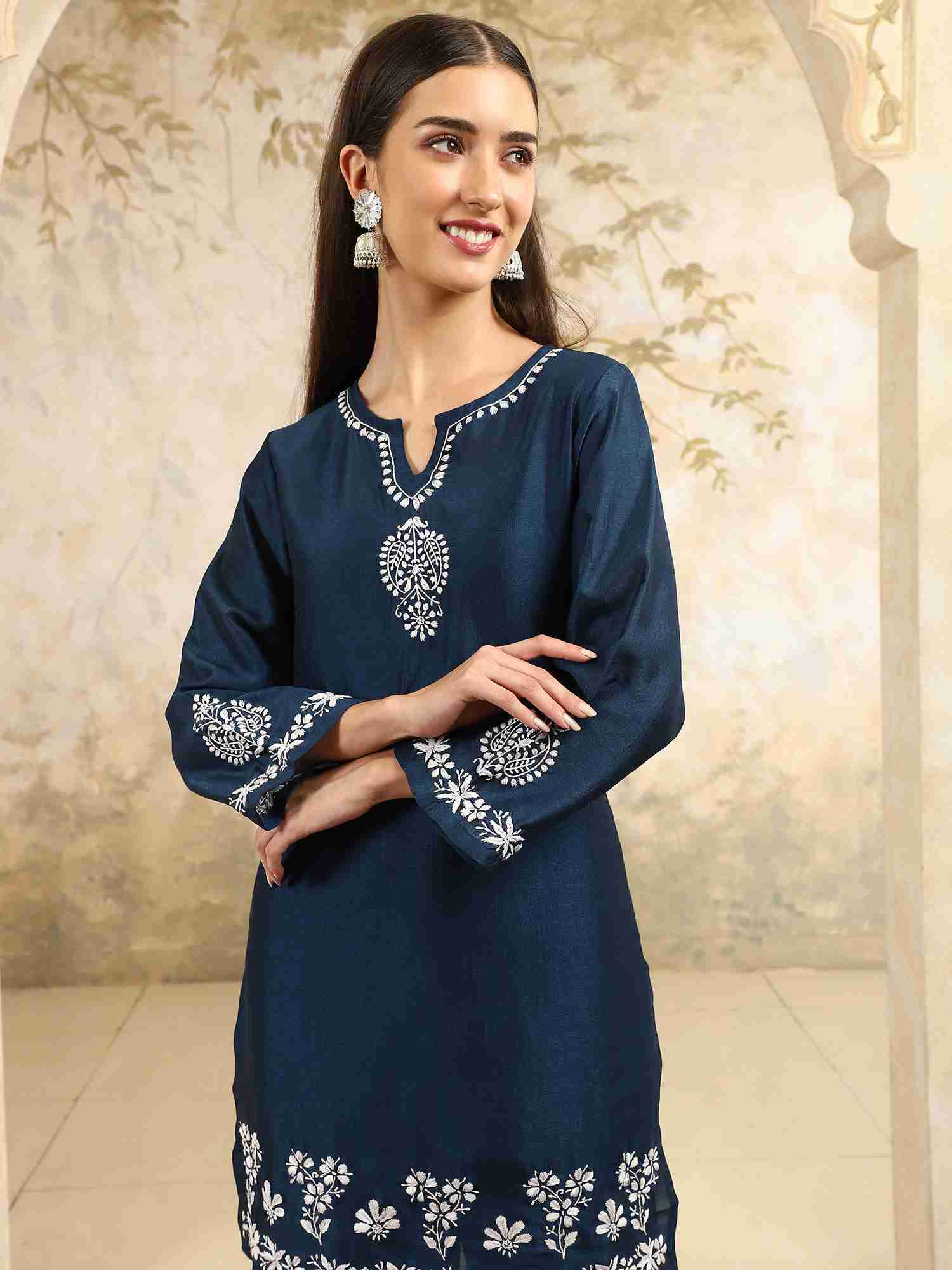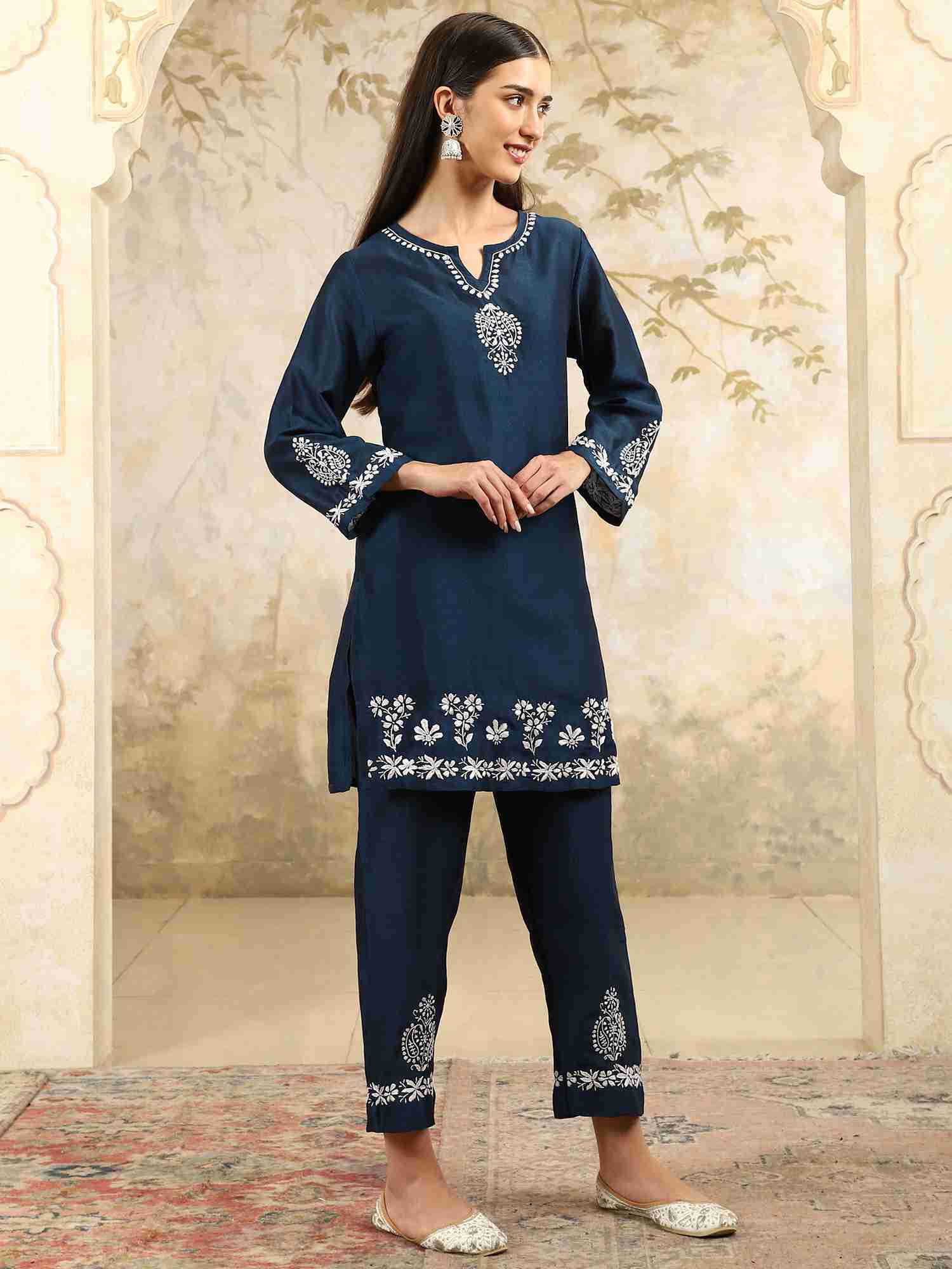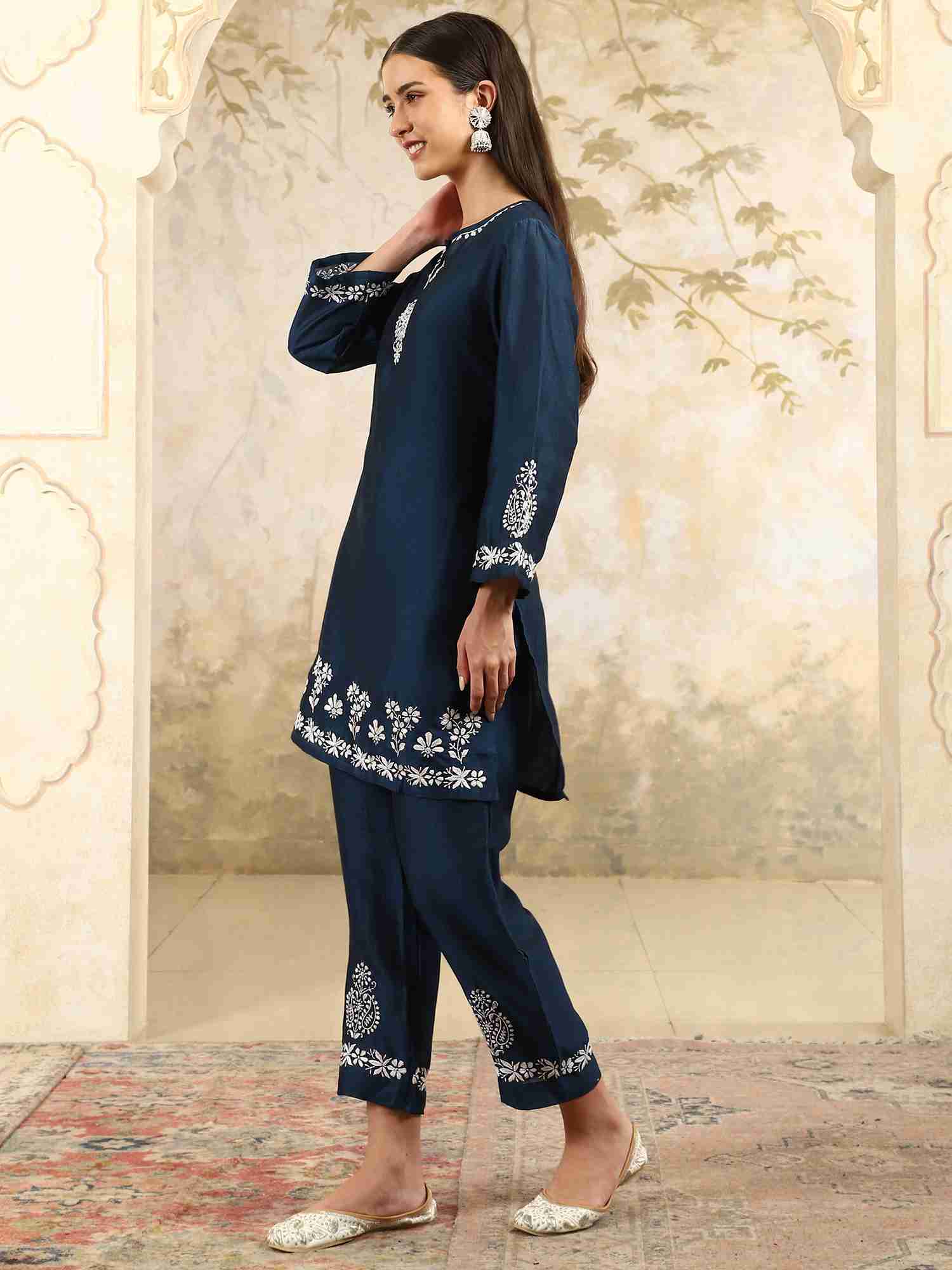 Yasmin Chikankari Kurta Set with White Thread – Notch Neck