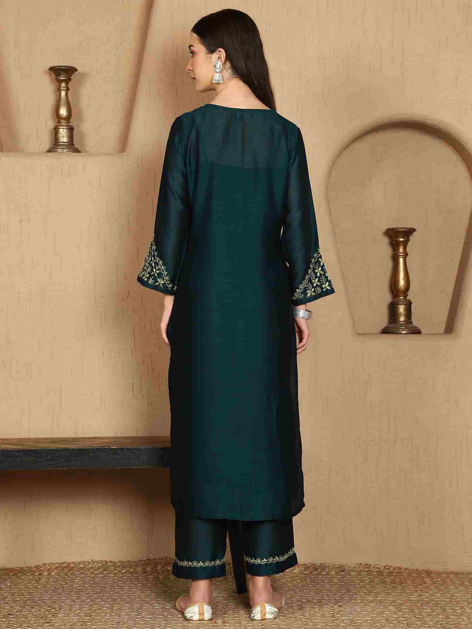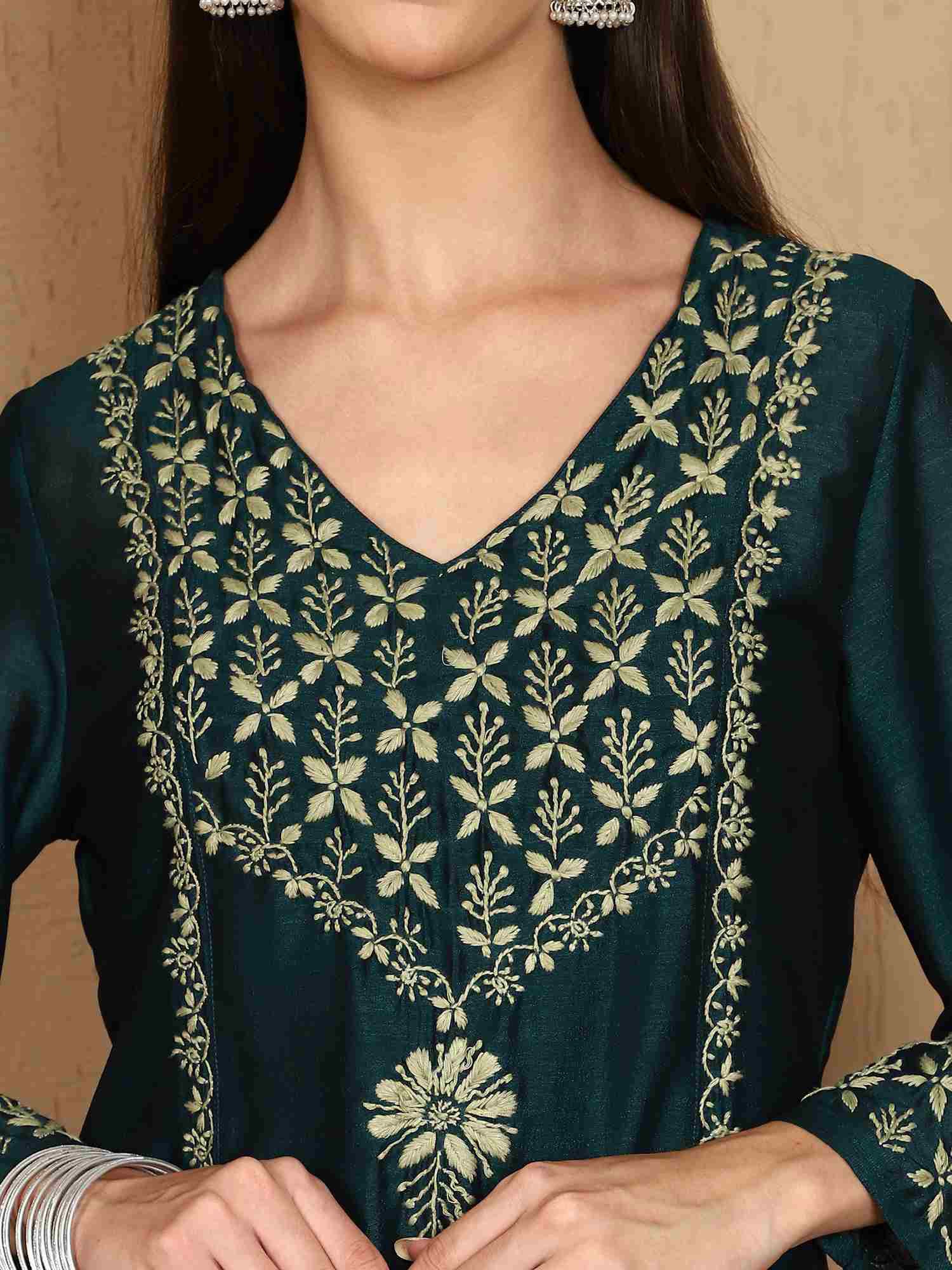 Zarah Chikankari Kurta Set with Stylish Green Yoke – V Neck